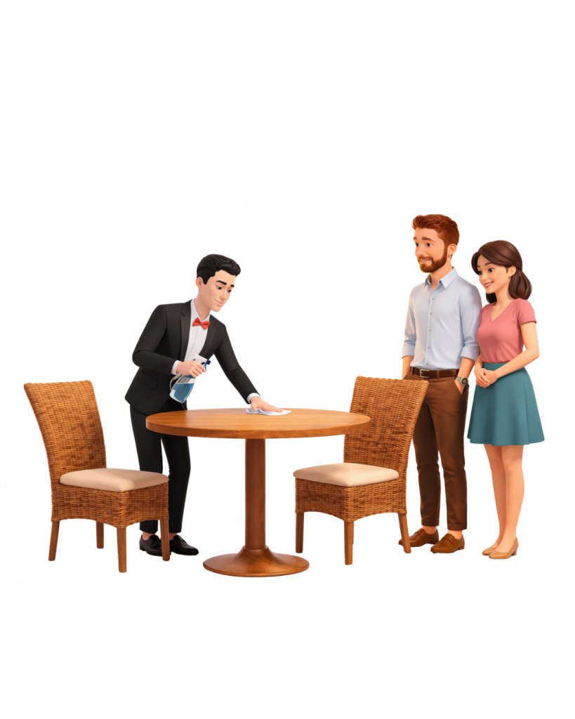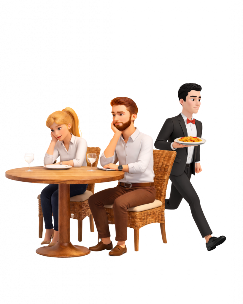 Issus du monde de la restauration, nous savons à quel point il peut être difficile de repérer rapidement un client qui a besoin de quelque chose, et a quel point il est important de ne pas aller trop vite pour ne pas les presser.